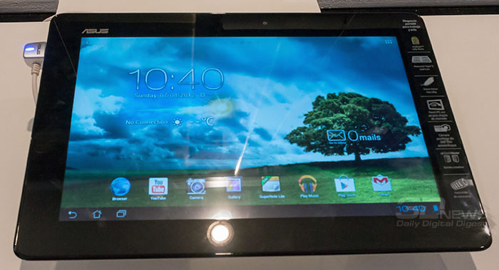На стенде ASUS во время WMC 2013 наши сотрудники ознакомились с уже анонсированными ранее продуктами VivoTab Smart и MeMO Pad Smart. Первый был представлен в начале февраля. Это 10,1-дюймовый планшет, созданный для среднего сегмента рынка и основанный на чипе NVIDIA Tegra 3 @1,2 ГГц.