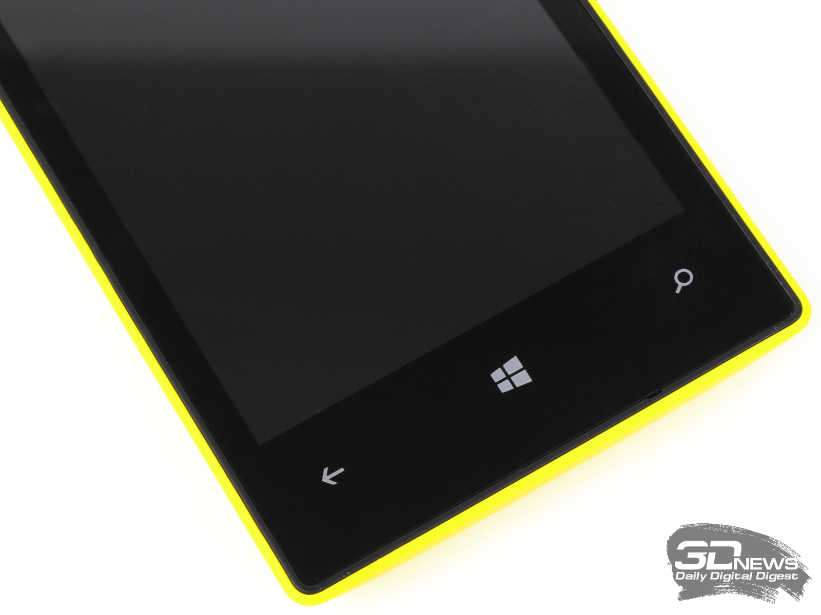 В Nokia Lumia 520 нет подсветки сенсорных кнопок — зато их маркировка ярче и лучше видна на свету