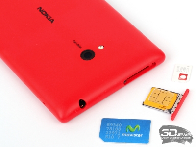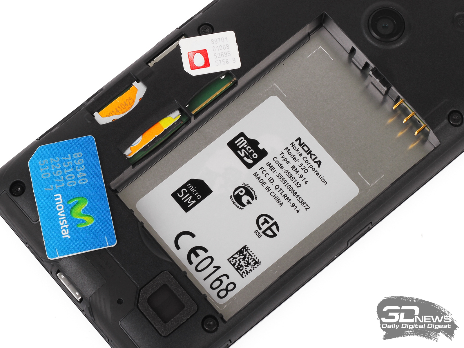 В обеих моделях использованы микросимки и есть разъем для карт MicroSD. Но в 520-й места для карточек расположены под крышкой, а в 720-й они устанавливаются в лотки