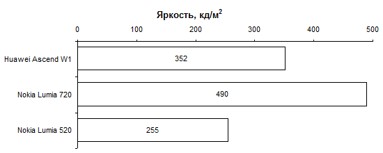Яркость дисплея Lumia 720 не оставляет шанса придраться: почти 500 кд/м2, вряд ли этого кому-то покажется мало. Экран Lumia 520 почти вдвое более тусклый — и это прекрасно чувствуется, особенно летом, на свежем воздухе.