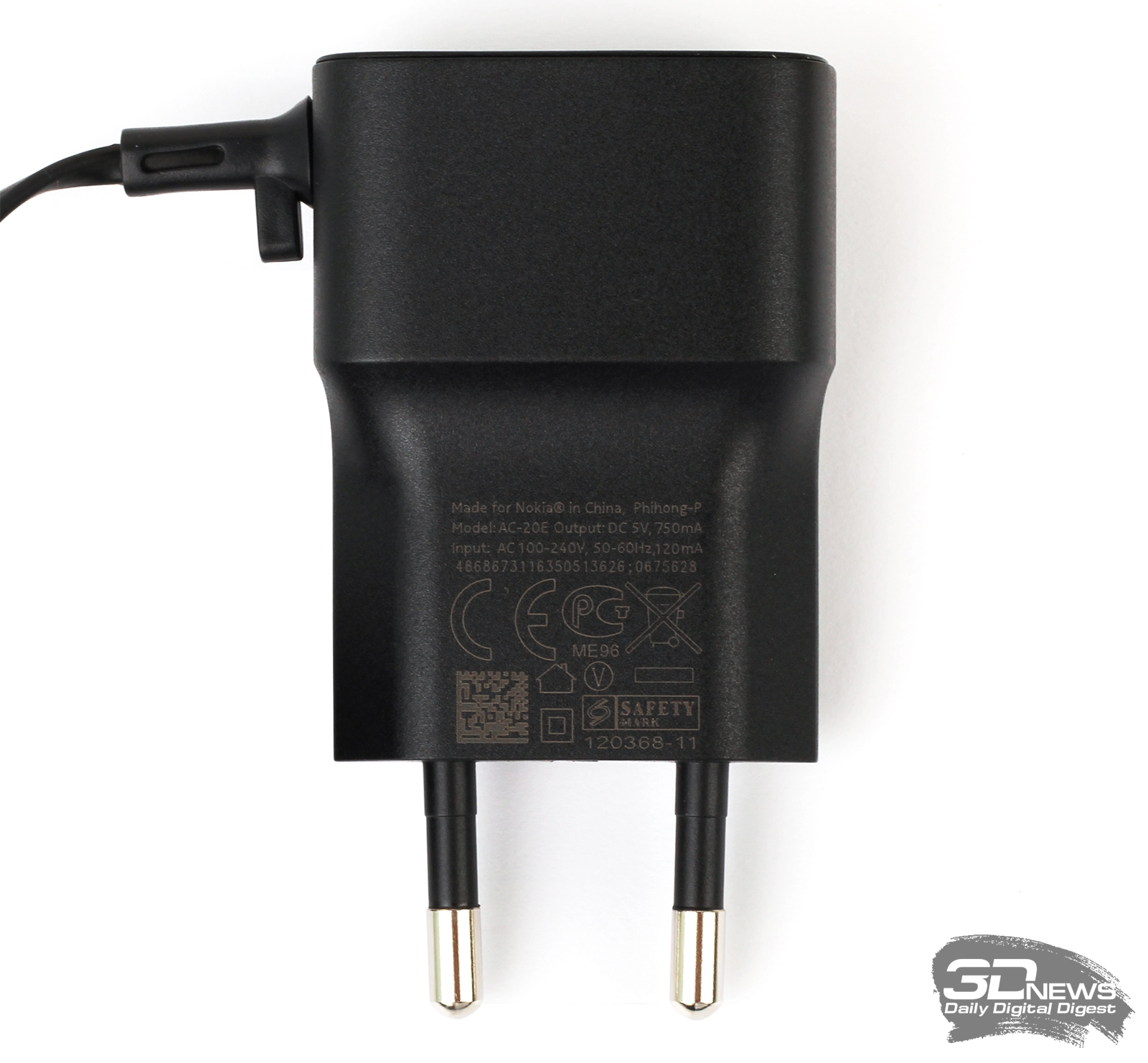 Не одинаковы и выходные характеристики зарядок: адаптер младшей модели выдает всего лишь 0,75 А, тогда как старшей положен более питательный ток — 1,3 А.