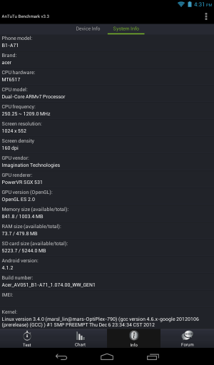 Acer Iconia B1 — информация о системе и «железе»
