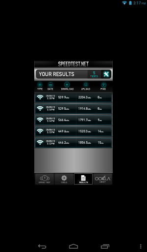 ![]() Результаты теста Wi-Fi Analyzer |