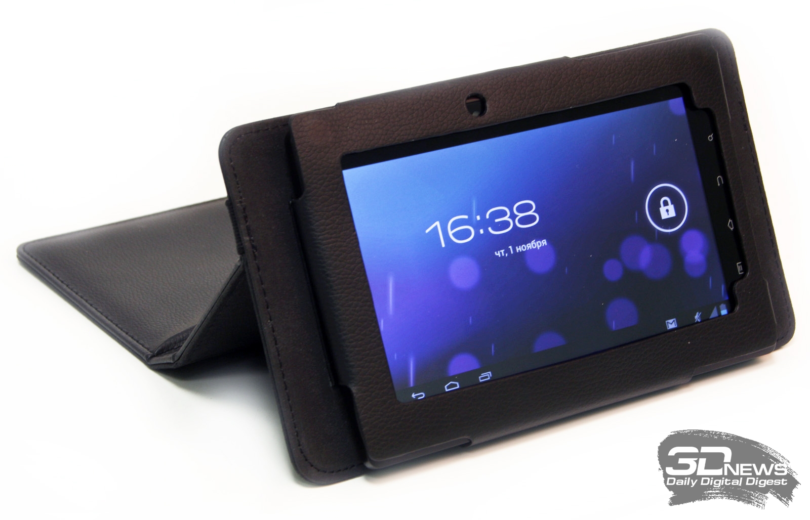 Дисплей планшета основан на TN-матрице. Но не спешите расстраиваться, это вполне неплохой «тэ-эн». Его даже можно спутать с IPS: когда держишь устройство в горизонтальной ориентации, цвета практически не меняются при отклонении взгляда от перпендикуляра. Но стоило нам перевернуть планшет вертикально, как все стало на свои места: цвета инвертировались, а за IPS подобного не водится. Видимо, причиной такого эффекта стало то, что матрицу в устройство установили с поворотом на 90 градусов — подобное нам встречается не впервые. Экран у новинки ёмкостный, а поэтому он быстро и — в большинстве случаев — точно реагирует на нажатия. Дисплей поддерживает до пяти одновременных прикосновений, поэтому с мультисенсорными жестами проблем не возникает.