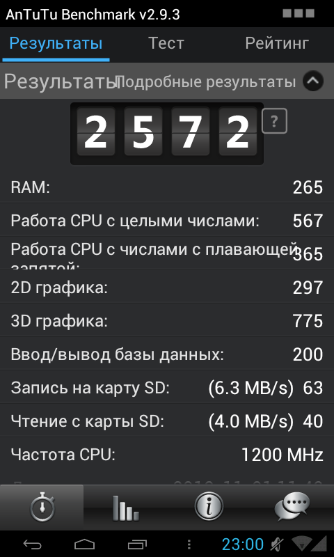 Результаты теста AnTuTu Benchmark (помните, мы писали, что зачастую информация не умещается на экране? Вот еще один наглядный пример)