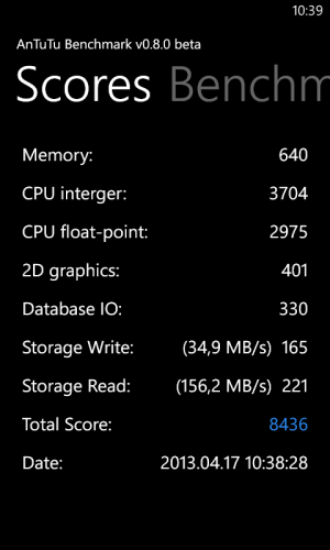 Графический контроллер в данной SoC не самый продвинутый — Adreno 305. По производительности он близок к уже встречавшемуся нам Adreno 225. Количество игр в Windows Marketplace не слишком велико, так что и нужды в мощной графике пока нет. Смартфон без проблем воспроизводит с помощью стандартного медиаплеера видео высокой четкости 720p в контейнерах .AVI, .WMV, и .MP4 с разными популярными кодеками.