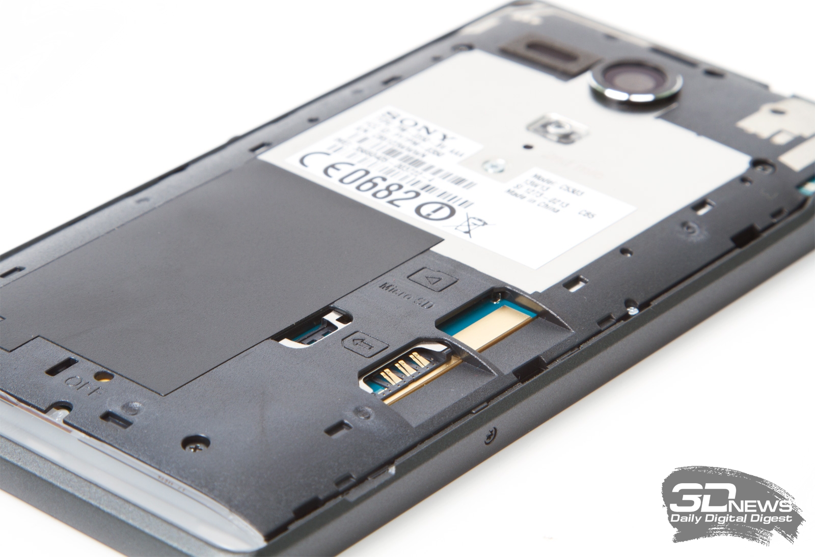 Задняя крышка у Xperia SP съемная, однако доступа к аккумулятору у пользователей нет, что, разумеется, исключает возможность «горячей» замены батарейки. Под ней расположены слоты для карточек SIM и microSD. Собран смартфон надежно. Каких-либо люфтов за время тестирования обнаружено не было, разве что пластиковая крышка может поскрипывать при сдавливании, но к этому мы уже привыкли. Sony Xperia SP поставляется на рынок в корпусах белого, черного и красного цветов.