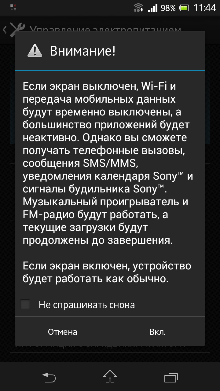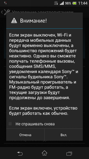 Sony Xperia SP — управление электропитанием