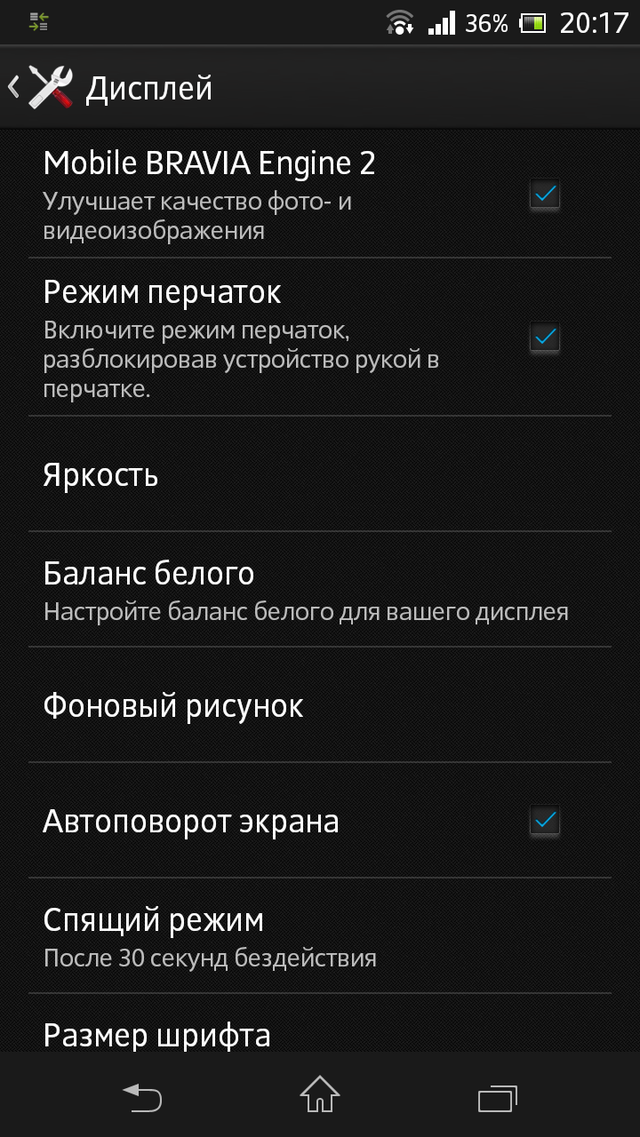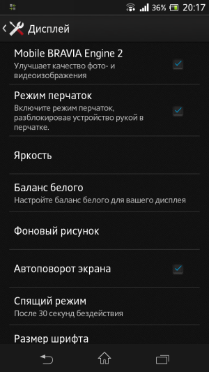 Sony Xperia SP — настройки дисплея