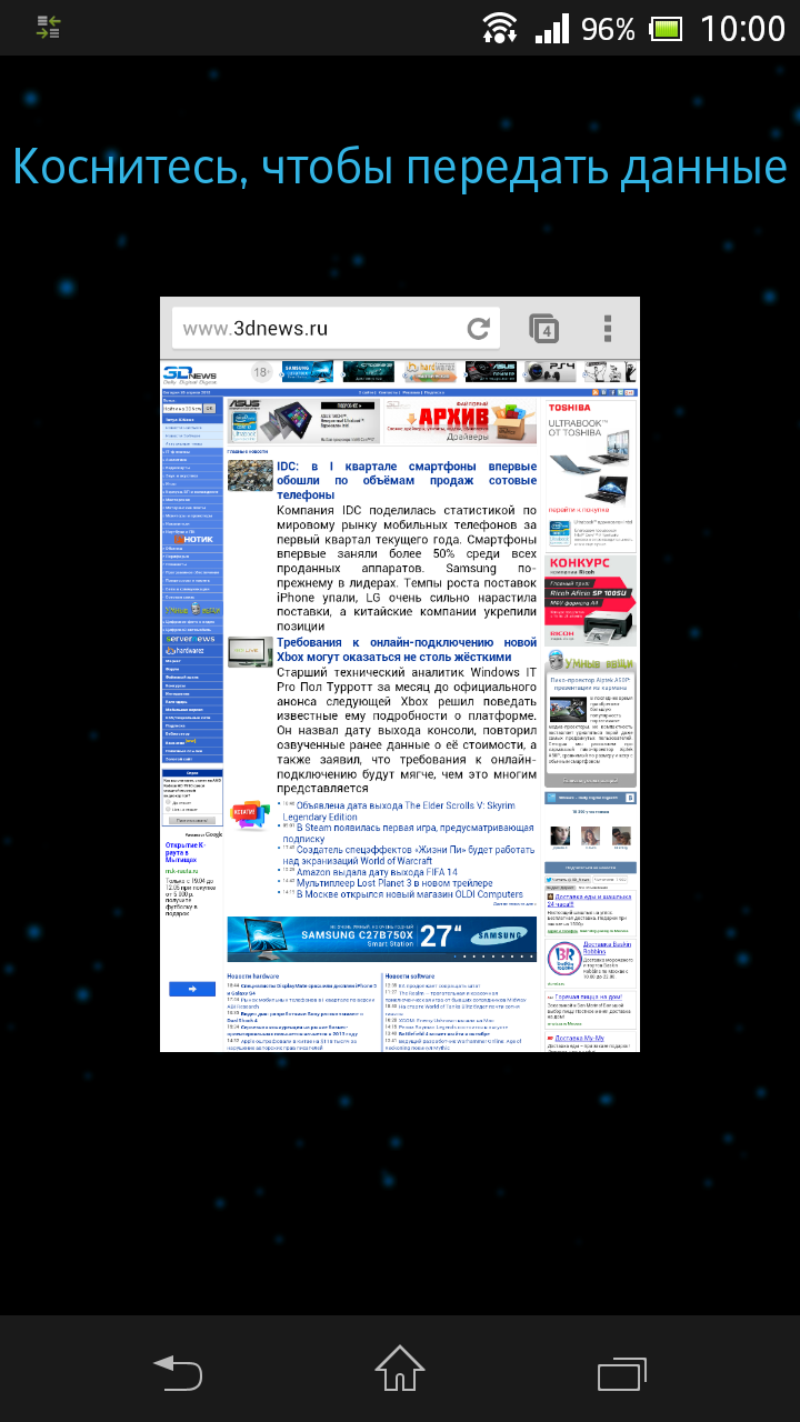 Sony Xperia SP — отправка данных через NFC