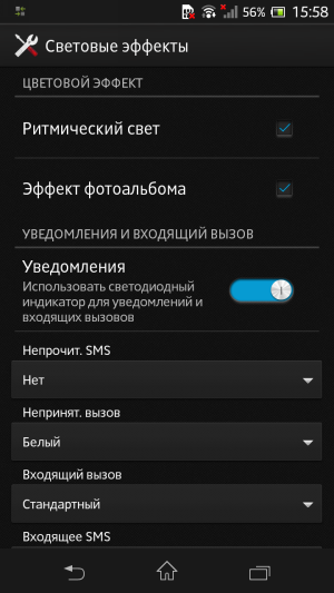 Sony Xperia SP — настройки подсветки