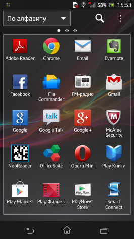 От привычного интерфейса Android осталась только структура меню — все остальное Sony перекрасила по своему вкусу. И, надо признать, получилось очень симпатично. В оболочку вшиты фирменные обои, виджеты и прочее. Прошивка отлажена отлично — ничего нигде не тормозит, напротив, все работает крайне гладко.