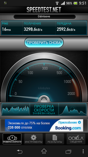 Sony Xperia SP — результаты теста Speed Test в сети 3G+