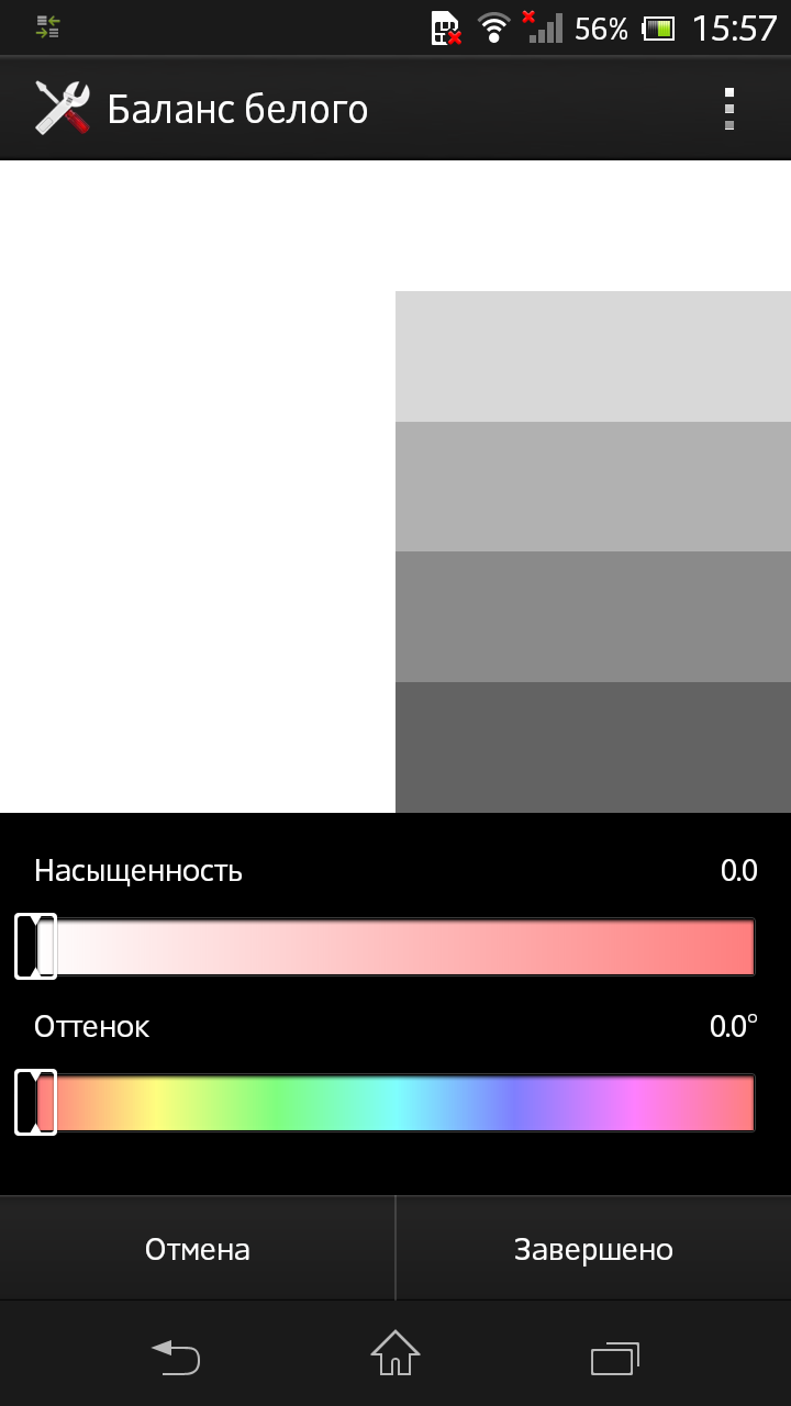 Цветовая температура дисплея незначительно смещена в «теплую» сторону — 5900К против эталонных 6500К. Однако в настройках устройства есть уникальная в своем роде функция корректировки баланса белого. Впрочем, острой необходимости пользоваться ей нет — шансов сделать хуже, чем было, гораздо больше. Никуда не делся отключаемый фильтр BRAVIA Mobile Engine 2, который в теории делает черный цвет более насыщенным при просмотре фото или видео; на практике разница совсем небольшая. Смартфоном Xperia SP можно управлять в неплотных перчатках — приятная особенность сенсорного экрана.