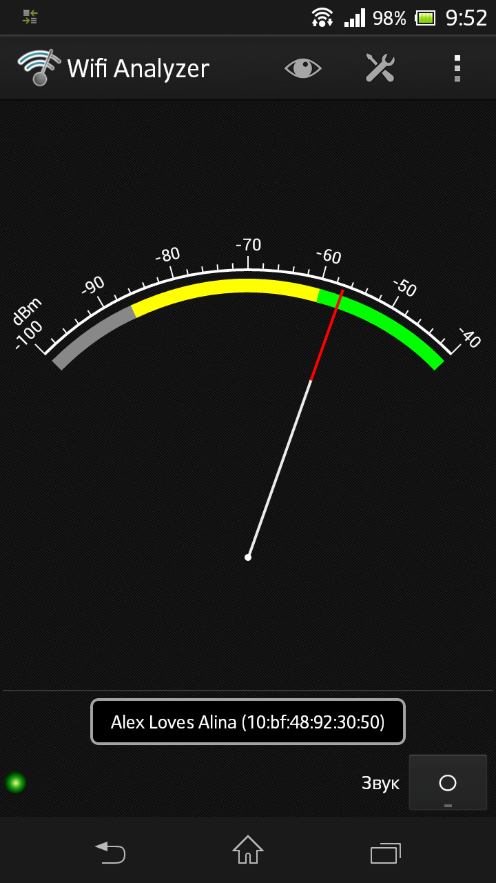 Результаты теста Wi-Fi Analyzer на расстоянии пяти метров от роутера |