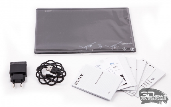 В отличие, например, от Японии, в Россию новинка приехала в скромной комплектации без излишеств. В коробке мы не обнаружили никаких аксессуаров вроде док-станции или наушников. Стандартный комплект поставки Tablet Z включает следующее: