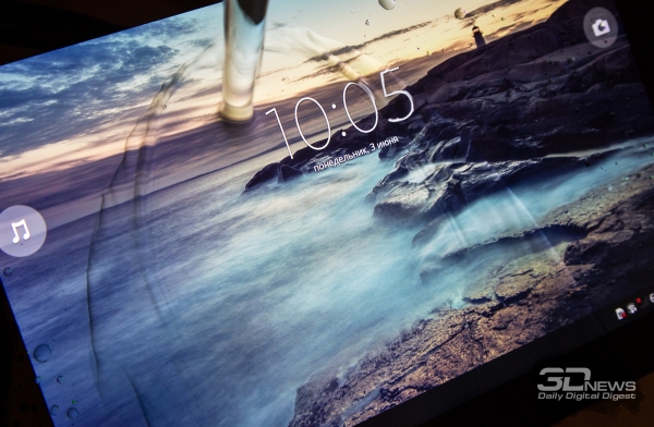 Вся лицевая панель планшета прикрыта защитным стеклом, оберегающим экран от повреждений. На него, как и у смартфонов Sony, приклеена пленка, устойчивая к появлению царапин и отпечатков пальцев. Последние собираются неохотно, а удаляются очень просто. Диагональ экрана составляет 10,1 дюйма, разрешение — WUXGA (1920x1200 точек). Плотность точек, таким образом, переваливает за отметку 224 dpi, благодаря чему любой текст на дисплее Tablet Z выглядит очень резким. Отдельные пиксели видны только тем, кто любит их выискивать, — простые пользователи их не увидят, а на расстоянии полусогнутой руки они незаметны даже самым ярым скептикам. Экран основан на технологии IPS или аналогичной (в официальных характеристиках говорится о TFT без каких-либо уточнений — но едва ли это TN), так что за углы обзора можно не переживать, они очень широкие. Примечательно, что даже традиционное падение контрастности при отклонении взгляда от нормали не такое ощутимое, каким могло бы быть. Устройство очень чутко реагирует на прикосновения, без проблем распознает жесты и поддерживает до десяти одновременных нажатий.