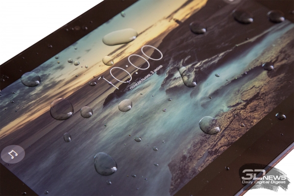 Как и многие новые смартфоны японского гиганта, планшет Tablet Z защищен от попадания пыли и влаги по стандарту IPX55/57. Однако непосредственно для работы под водой планшет не предназначен — попадание жидкости на включенное устройство в буквальном смысле раздражает сенсорную подложку, из-за чего в хаотичном порядке начинают открываться программы и пролистываться окна, а на касания планшет не реагирует. При полном погружении под воду данный «спецэффект» пропадает, однако устройство продолжает откровенно игнорировать нажатия на дисплей. Так что для подводной съемки планшет не очень-то годится. Зато он по крайней мере переживет практически любые контакты с жидкостью — а это уже немало.