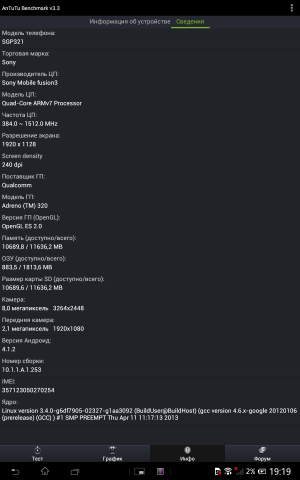 Sony Xperia Tablet Z — информация о системе и «железе» планшета