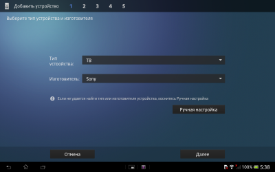 Планшет знает 25 различных типов техники и более сотни производителей — под каждое из знакомых устройств приготовлены свои шаблоны управления. Если же так случится, что у вас в доме найдется какая-то экзотика, о которой приложение не ведает, есть возможность обучить его вручную. После добавления нового шаблона формируется общий список всех добавленных устройств.