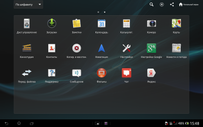 Помимо всех стандартных Android-приложений, Sony предустановила и свои, фирменные. Перечислять их мы не будем — скриншоты выше наглядно демонстрируют, какое программное обеспечение находится в устройстве, — отметим лишь, что в планшете есть все, чтобы достать его из коробки и начать пользоваться. Если какие-либо сторонние приложения не нужны, их можно, в целях экономии памяти, удалить — в оболочку они не вшиты. Фирменный «лончер» работает стабильно и без нареканий. Вероятно, даже закоренелые любители чистого Android не будут воротить нос — уж больно хорошо у Sony получилось.