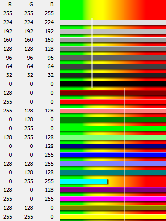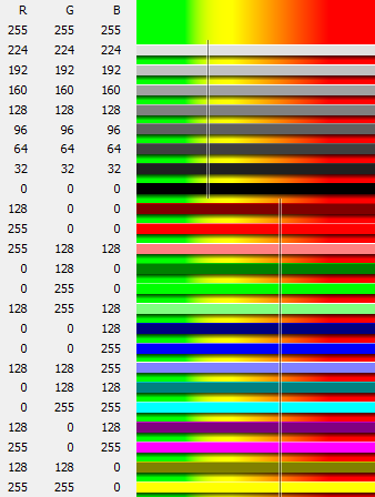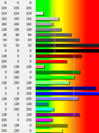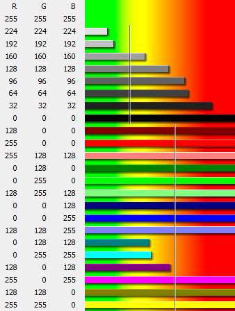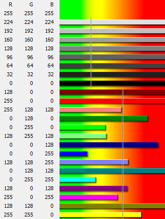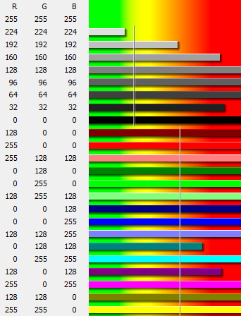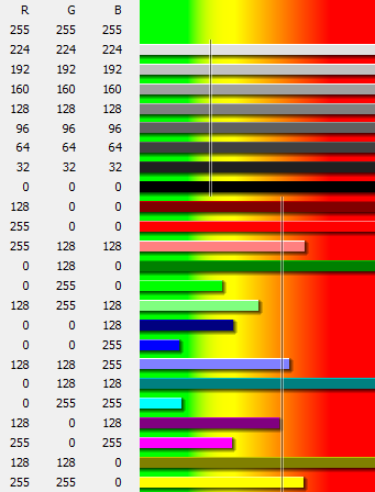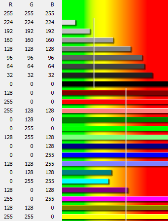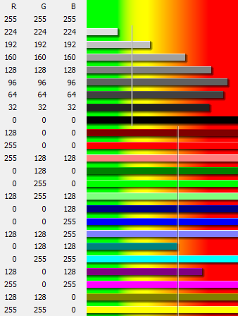| Базовые цвета в хроматических координатах CIE: x/y | |||