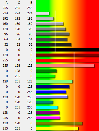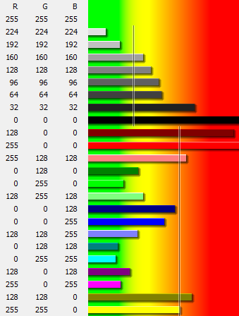 - цветовая температура белого поля при различных значениях яркости видеосигнала;