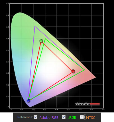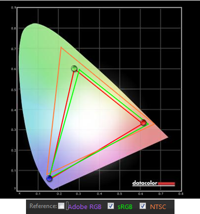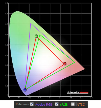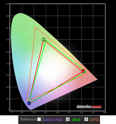 Графики цветового охвата монитора в предустановленных режимах похожи друг на друга как две капли воды. Что касается площади охвата, можно смело утверждать, что она примерно равна цветовому пространству sRGB, однако точки в красной и зеленой областях не совпадают с референсными значениями. А вот результаты измерения пользовательского режима с различными предустановками цветовой температуры разочаровали: цветовой охват во всех случаях одинаковый и при этом здорово не дотягивает до эталонного. Честно говоря, таких показателей не ожидал никто.