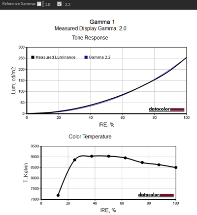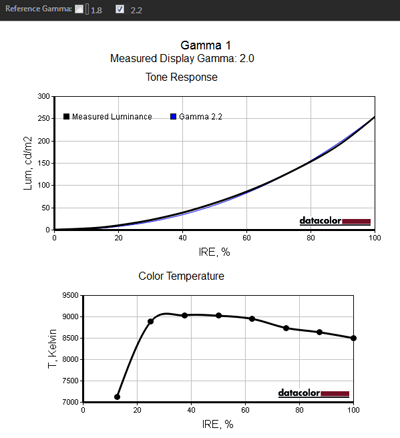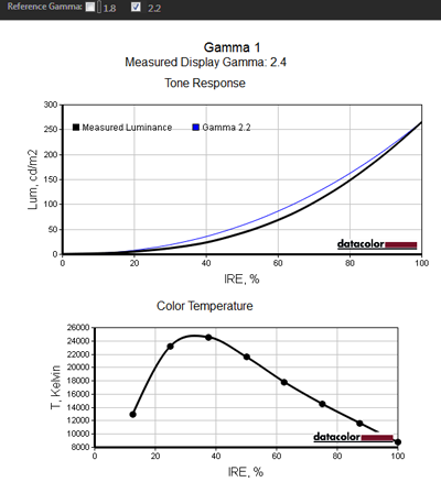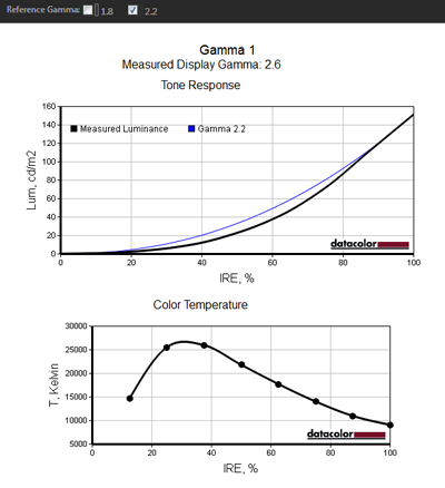 Philips 273G3DH, режим «Управление» — гамма-кривая и постоянство цветовой температуры |