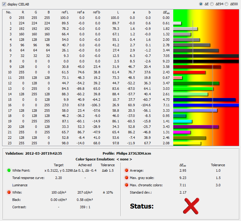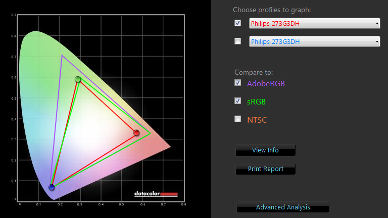| Philips 273G3DH, после калибровки — цветовой охват | |