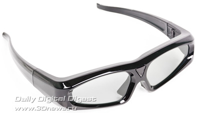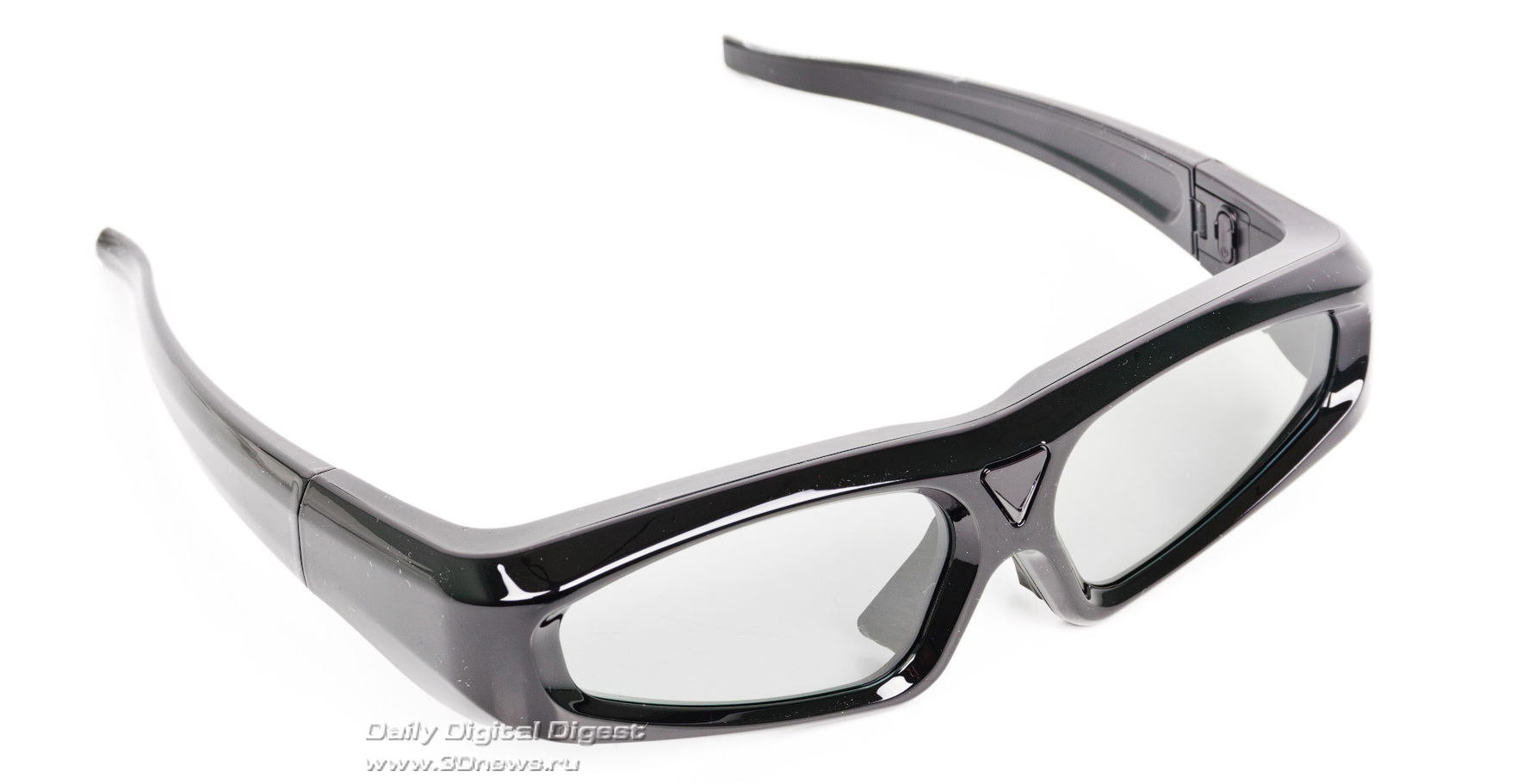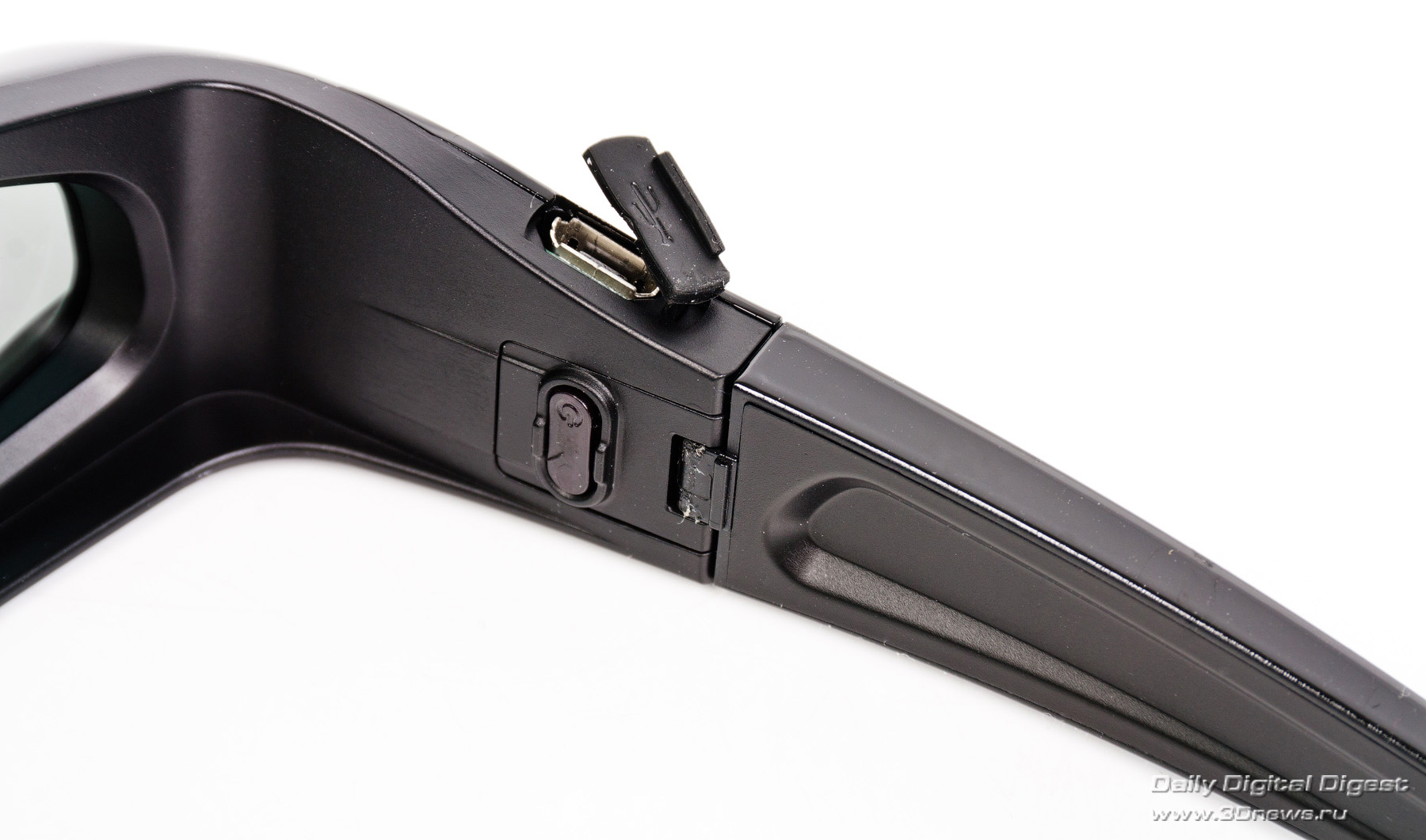 Отдельно стоит упомянуть затворные 3D-очки элегантной формы, выполненные из глянцевого пластика. Если бы не однозначная функциональная принадлежность и надпись в инструкции, предупреждающая о том, что их нельзя использовать для защиты от солнца, очки могли бы стать стильным аксессуаром какой-нибудь модницы. Кстати, модель оснащена небольшим аккумулятором, зарядить который можно при помощи соответствующего шнура через порт Micro USB.