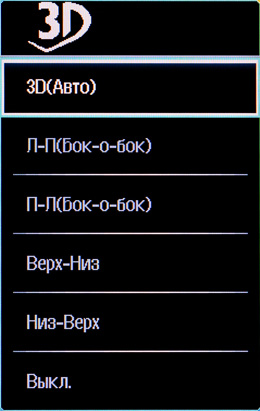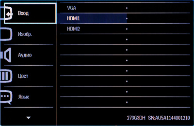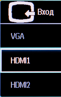 Остановимся более подробно на главном меню. Пункт «Вход», как следует из названия, позволяет выбрать вход видеосигнала.