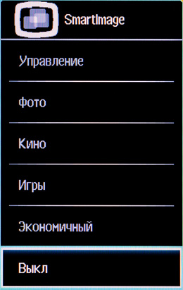 | Режим | Управление | Фото | Кино | Игры | Экономичный | Пользователь 6500 |