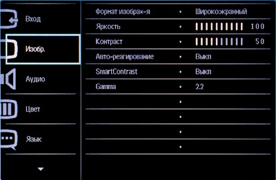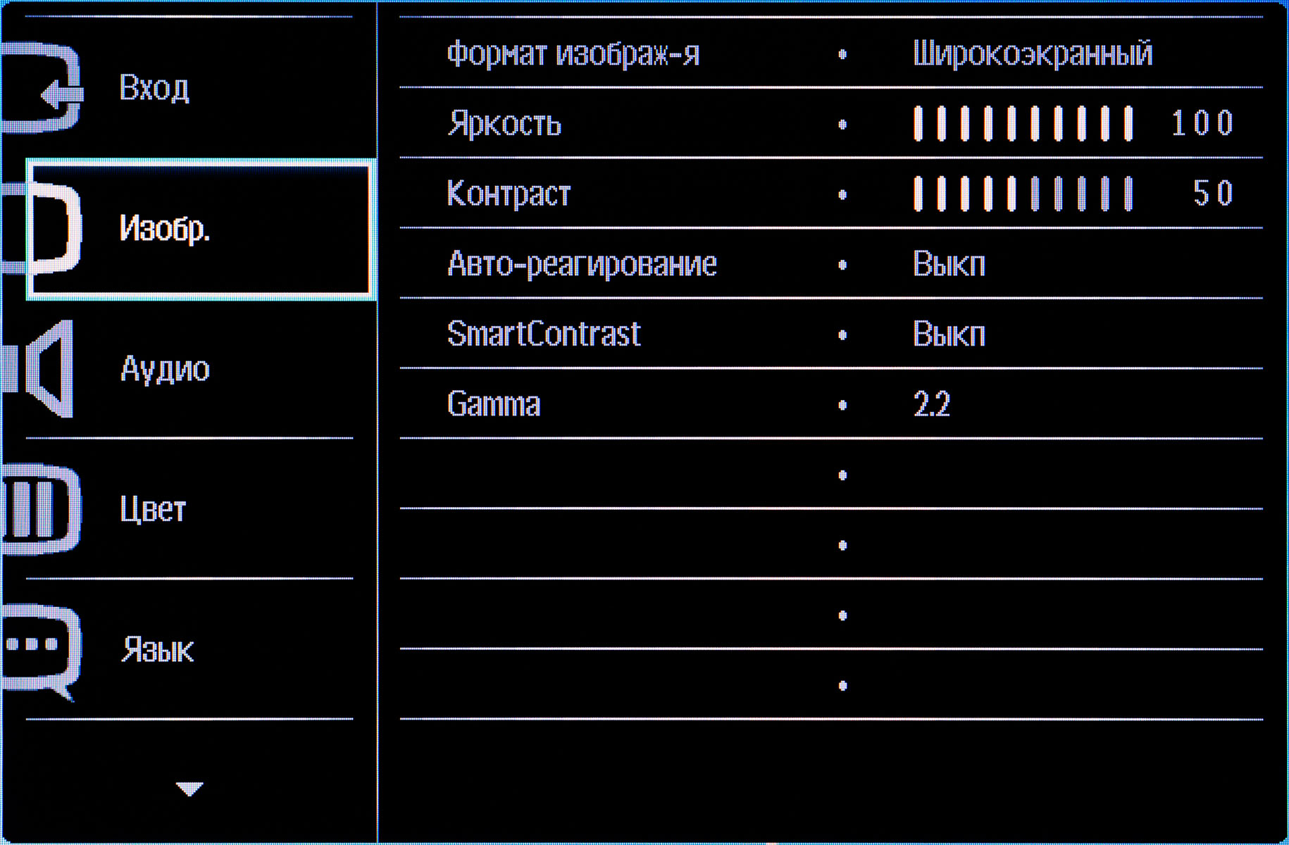 Philips 273G3DH — параметры изображения в пользовательском режиме