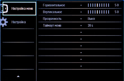 Пункт «Настройка меню» регулирует положение окна меню, его прозрачность и время отображения.