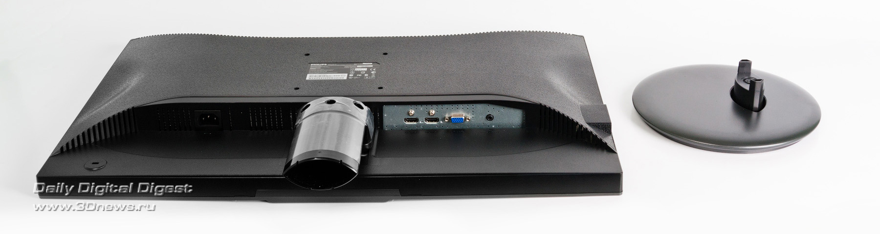 Комплектация, безусловно, очень богатая. Здесь есть все для качественного цифрового и аналогового подключения. Производитель позаботился о том, чтобы пользователь получил доступ ко всем возможностям монитора, просто достав его из коробки, подключив и установив драйвера. Да, как и подавляющее большинство дисплеев, Philips 273G3DH нуждается в элементарной сборке — нужно установить панель на основание подставки, причем никаких инструментов для этого не требуется.