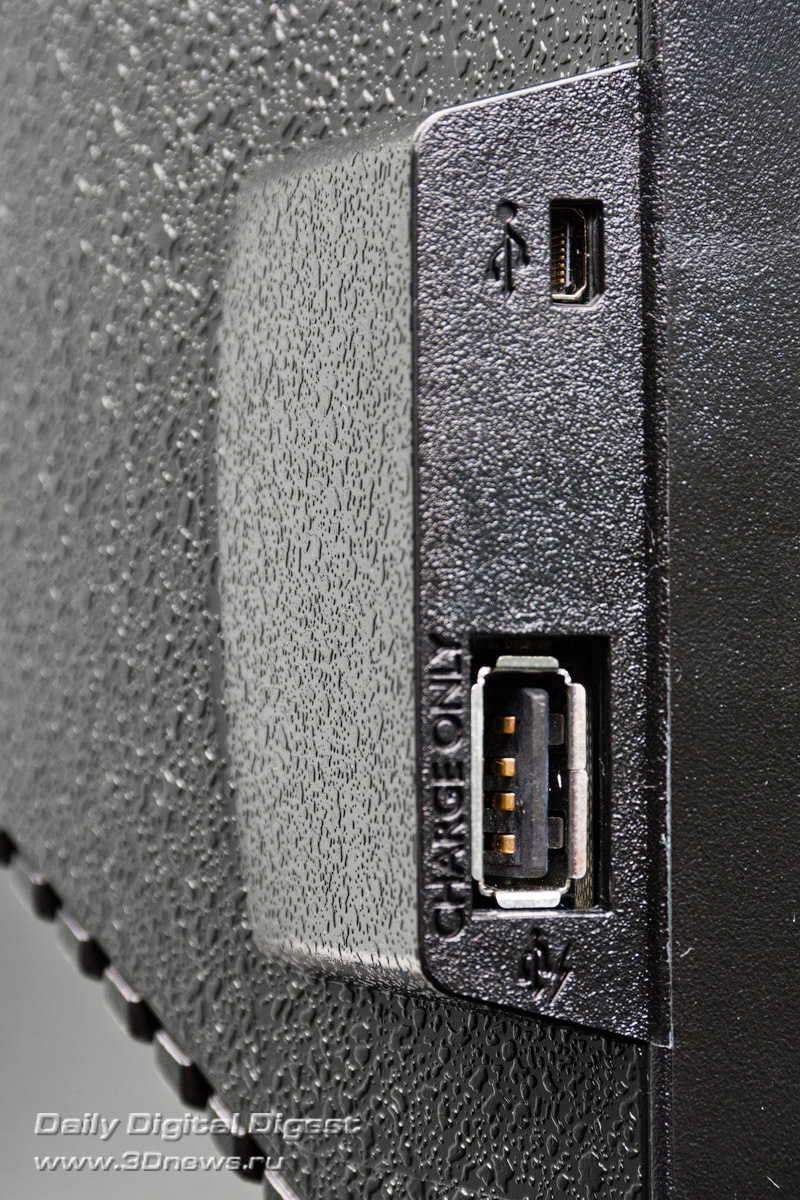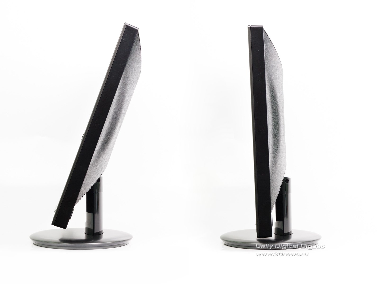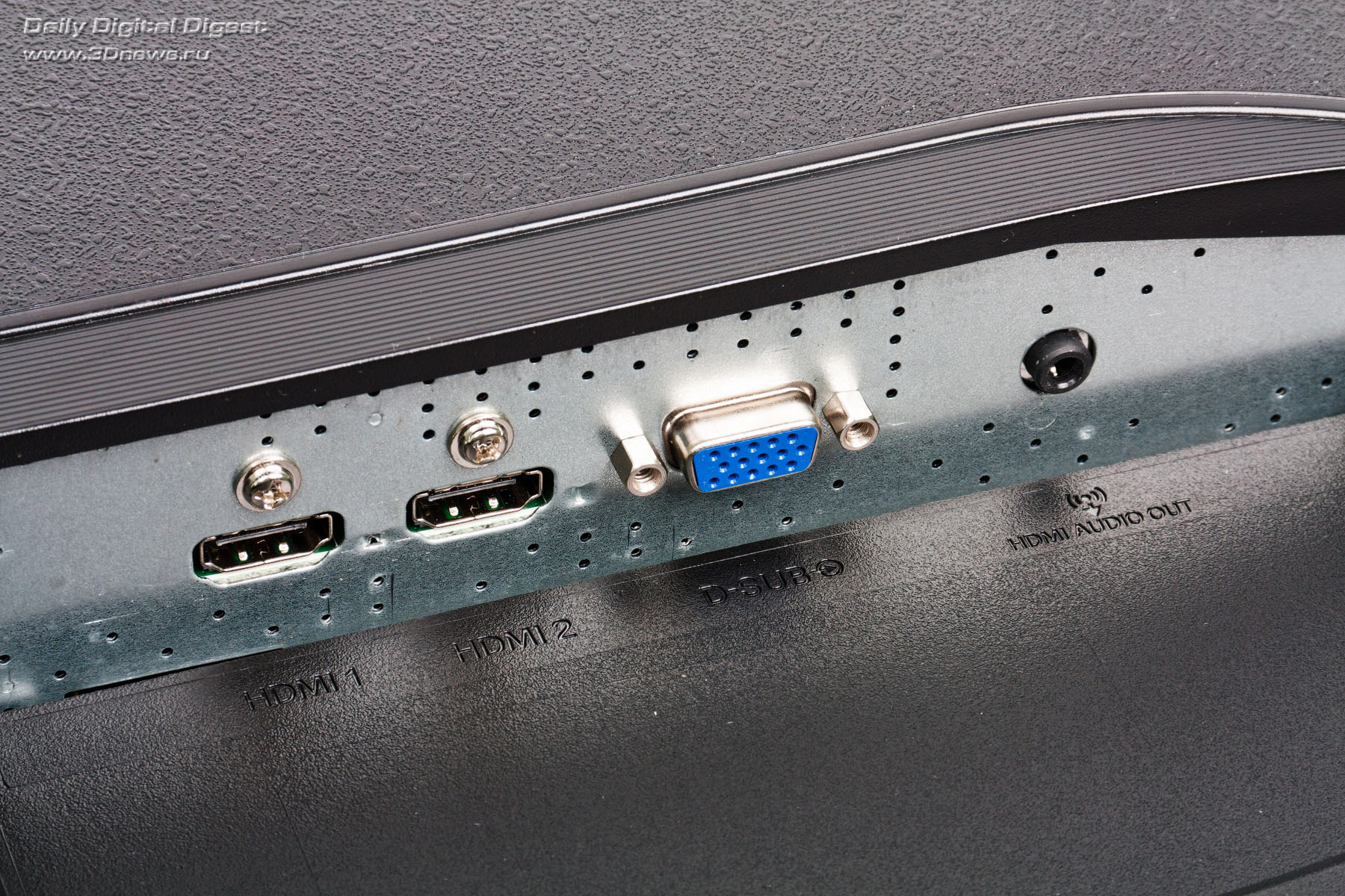 На боковой панели монитора расположено два USB-порта: один — для подключения синхронизатора затвора очков, другой — для зарядки аккумулятора самих 3D-очков. Использовать порты для подключения других устройств нельзя. Опора дисплея позволяет менять только угол наклона панели, регулировки по высоте не предусмотрено. Как уже было упомянуто выше, монитор оснащен всеми современными интерфейсами для качественного подключения видеосигнала как по «цифре», так и по «аналогу». К сожалению, разъема DVI не предусмотрено, зато присутствует целых два порта HDMI, с помощью которых можно передавать не только видеосигнал, но и аудиопоток. Набор видеоинтерфейсов можно было бы дополнить разве что портом DiplayPort, но это, как правило, признак профессиональных дисплеев. Встроенная микросхема декодирует звуковую составляющую сигнала HDMI, поэтому к монитору можно подключить внешнюю активную акустику и наслаждаться стереоизображением в сопровождении стереозвука. Блок питания встроенный, и это, разумеется, удобно. Кроме того, предусмотрено крепление на любую поверхность при помощи подходящего кронштейна стандарта VESA 100.
