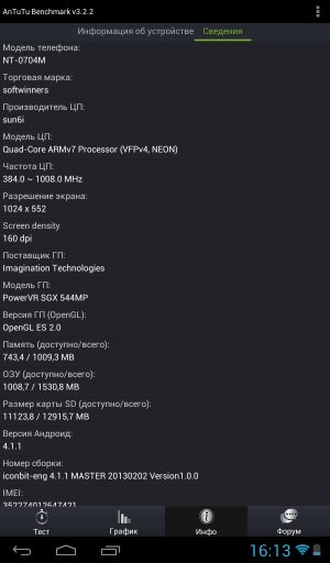 iconBIT NetTAB MATRIX ULTRA — информация о системе и «железе»