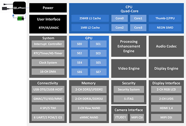 | Процессор | AllWinner A31: архитектура ARM Cortex-A7; Четыре вычислительных ядра; частота: 1,0 ГГц |
