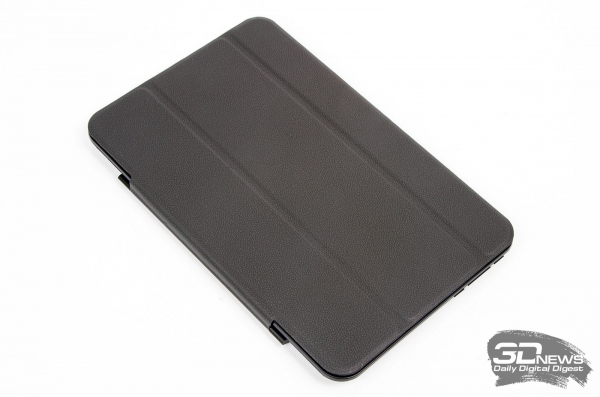Внешность новинки вызывает умиление — мы уже начали отвыкать от поистине небольших семидюймовых планшетов. Пропорция сторон экрана — 10:6, площадь дисплея небольшая, а посему габариты у гаджета скромные. Даже толщина, несмотря на Cover Case, из-за которого непременно «распухает» любое устройство, остается в допустимых пределах — 11 мм. Небольшой вес гаджета позволяет без затруднений брать планшет на прогулку, а благодаря маленьким габаритам устройство помещается в самые узкие отделения дамских сумочек.