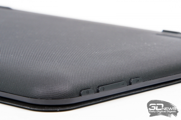 Кнопка включения/блокировки устройства приютилась на правой грани корпуса. Рядом с ней находится «качелька» регулировки громкости и клавиша «назад». Все три кнопки достаточно маленькие, выполнены из пластика и имеют короткий ход, поэтому первое время пользоваться ими вслепую несколько затруднительно.
