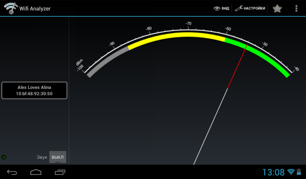 iconBIT NetTAB MATRIX ULTRA — результаты теста Wi-Fi Analyzer на расстоянии пяти метров от роутера
