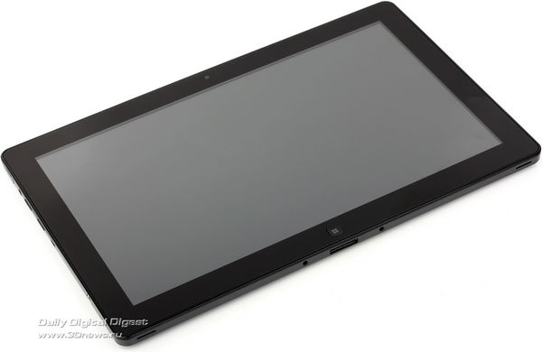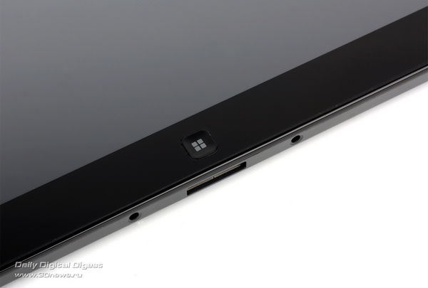 Дизайн Samsung Slate полностью соответствует планшетным канонам. Собственно, если смотреть только спереди, то можно и не понять, что это Windows-планшет и никакого «Андроида» внутри не прячется: черная рамка, полностью забранная тем же стеклом Gorilla Glass, которым накрыт и дисплей, — все как обычно в такого рода устройствах