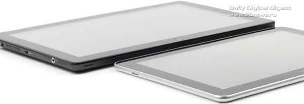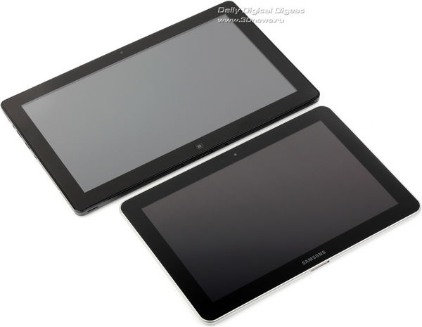 Диагональ дисплея составляет 11,6 дюйма. Так что Samsung 700T1A, очевидно, крупнее всех без исключения моделей на Android. Скажем, сравнение с Galaxy Tab 10.1 выглядит следующим образом.