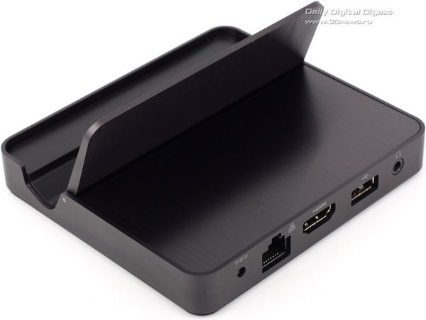 Док станция не только выполняет функции стенда и зарядки, но и слегка расширяет и набор разъемов. В ней есть адаптер проводной сети, HDMI, второй порт USB и выход на наушники.