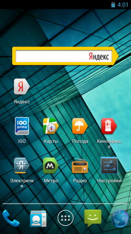 - Сервисы «Яндекса»: навигационные карты, расписание кинотеатров, интерактивная карта метро, прогноз погоды, расписание электричек и виджет пробок.