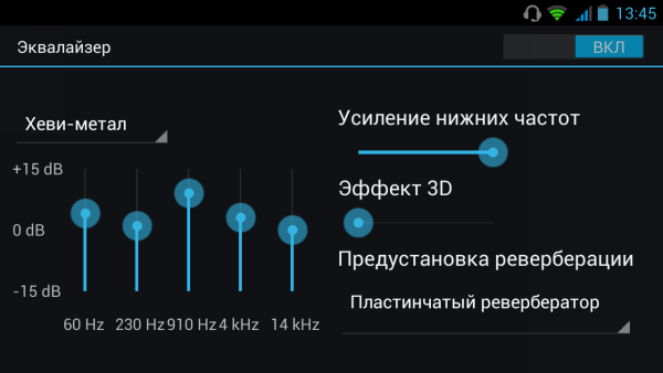 Explay HD — настройки эквалайзера встроенного медиаплеера