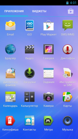 Explay HD работает на операционной системе Android версии 4.1.1 Jelly Bean. Никаких значительных изменений в ОС, кроме переработки панели уведомлений и добавления собственных заставок для рабочего стола, производитель не вносил. Система поставляется в несколько сокращенном варианте — мы недосчитались нескольких стандартных программ, например клиентов Gmail и Gtalk. Зато магазин Google Play никуда не делся, и все необходимое пользователи могут загрузить из него самостоятельно. Помимо этого, производитель предустановил в оболочку некоторые сторонние приложения: