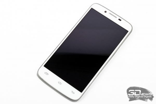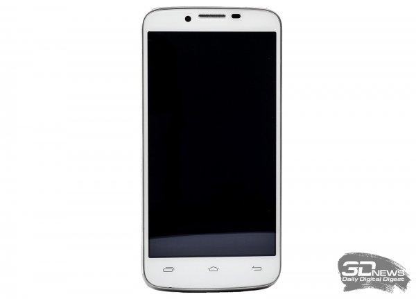 Три классические «андроидные» клавиши навигации у Explay HD аппаратные. Расположены они в нижней части лицевой панели, под экраном. На дисплее кнопки не дублируются, в связи с чем на экране остается больше «полезного» пространства. При нажатии клавиши подсвечиваются. В верхней части панели расположен разговорный динамик, прикрытый металлической сеточкой. Слева от него находится «глазок» фронтальной камеры, справа — датчик освещенности.