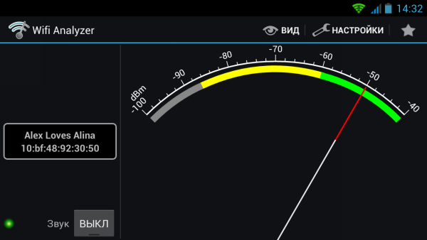 Explay HD — результаты теста Wi-Fi Analyzer на расстоянии пяти метров